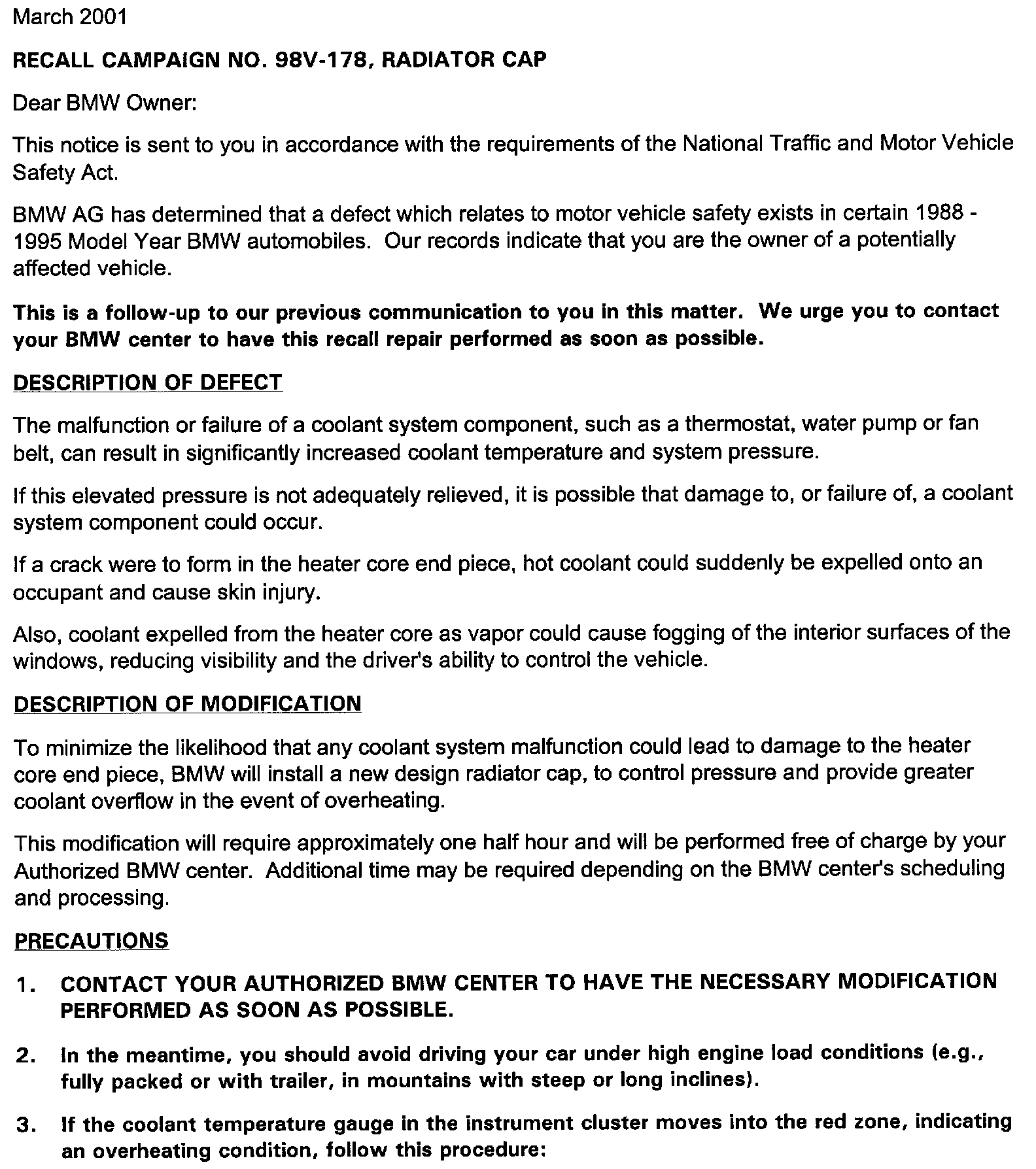 Recall - Radiator Cap Replacement