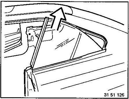 Lift off window recess strip from above with Special Tool 51 3 070.