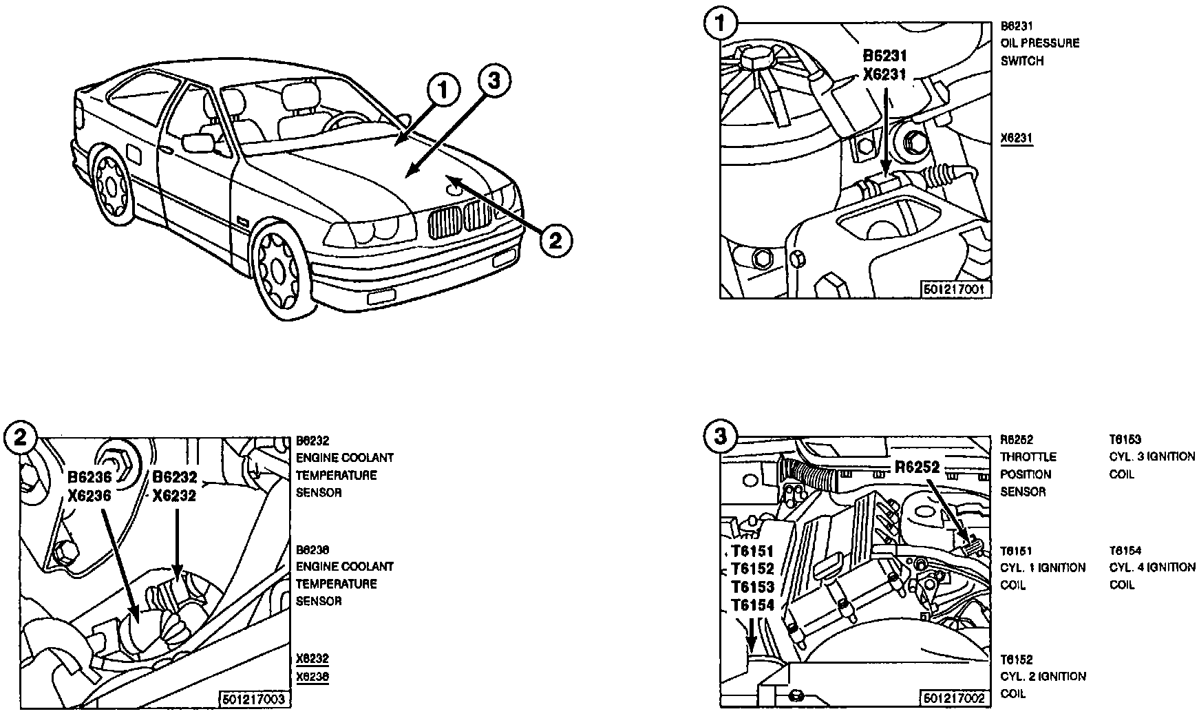 Coolant Temperature Sensor/Switch (For Computer): Locations