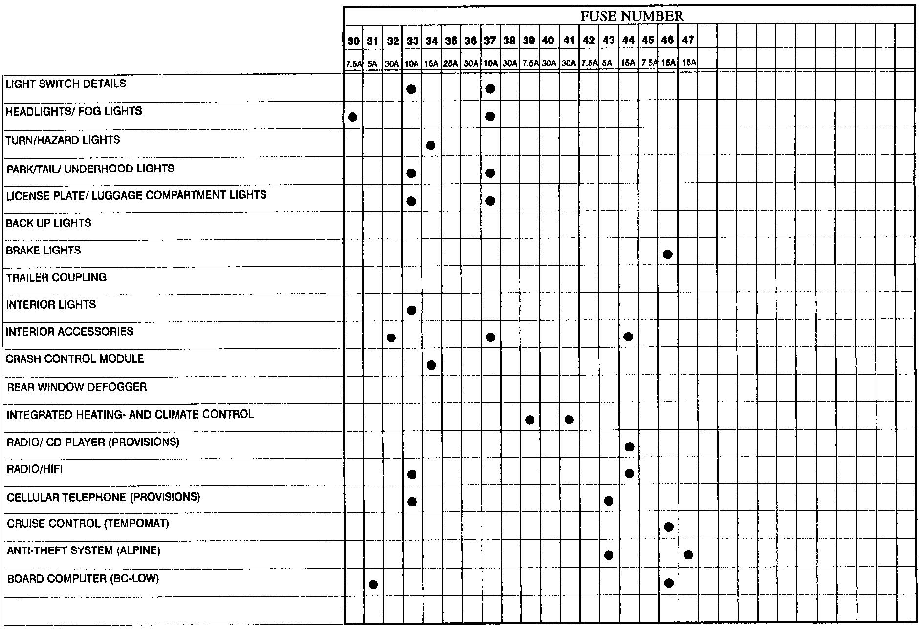 Fuse Chart: Fuses 30 To 47 (Part 2 Of 2):