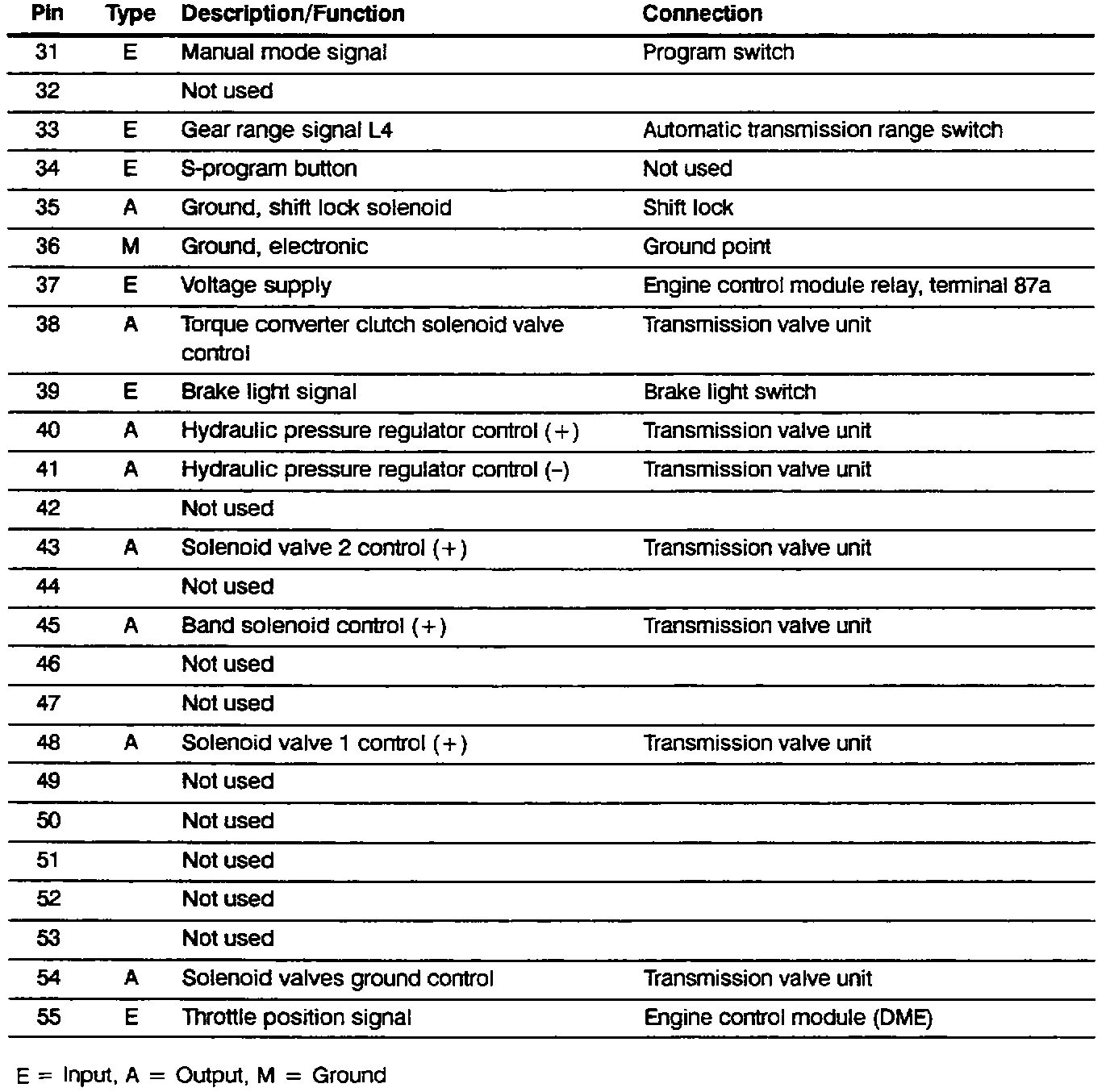 Electronic Transmission Control (EGS A4S 310R): Pin Assignments (Part 2 Of 2):