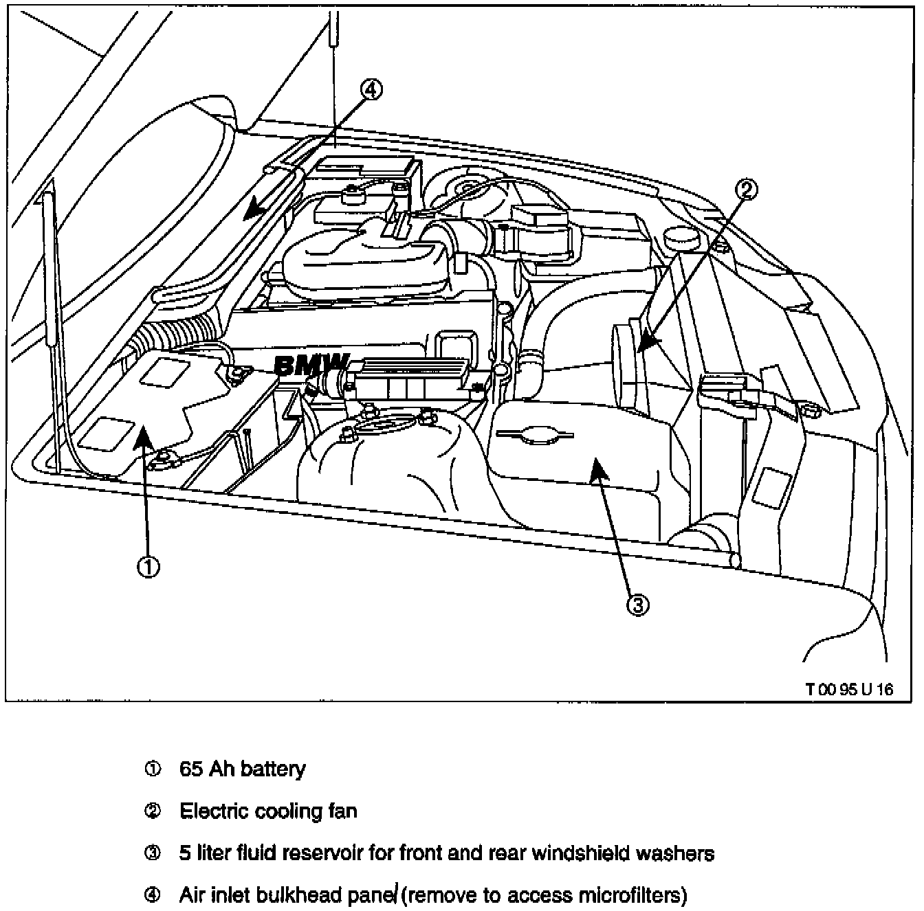 Since the battery is easily accessible in the engine compartment, the remote B+ terminal found on either E36 models has been eliminated on the 318ti.