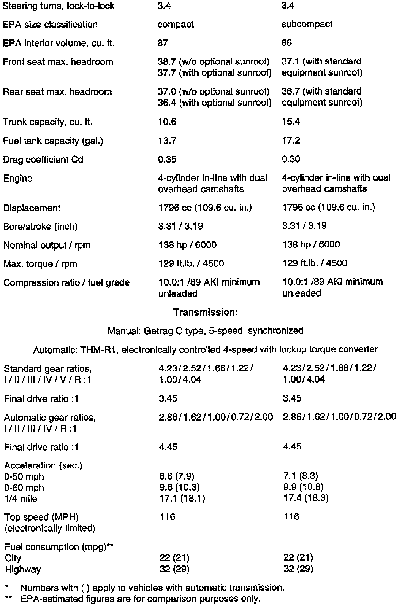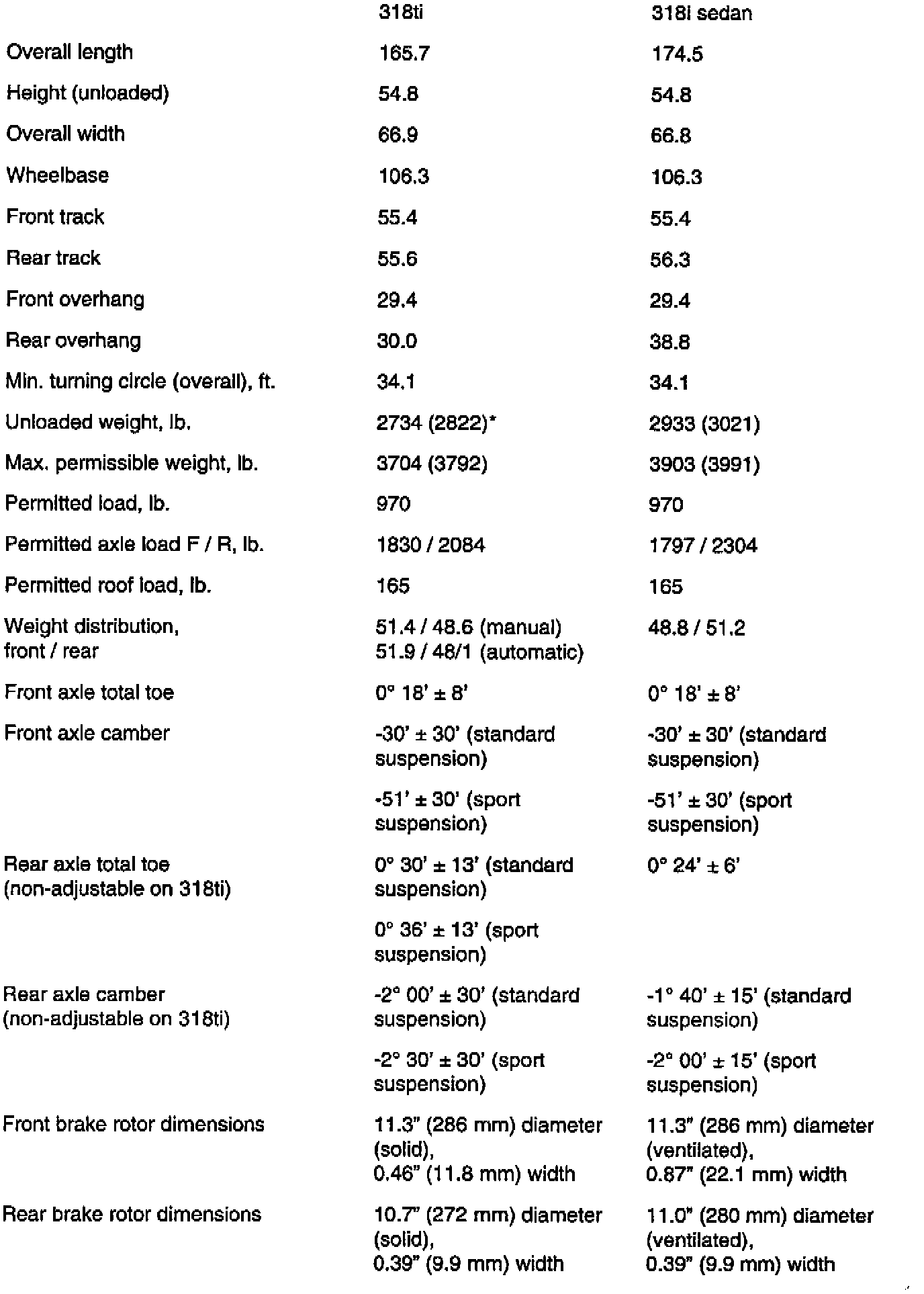 Specifications compared to 318i sedan: (all dimensions given in inches)