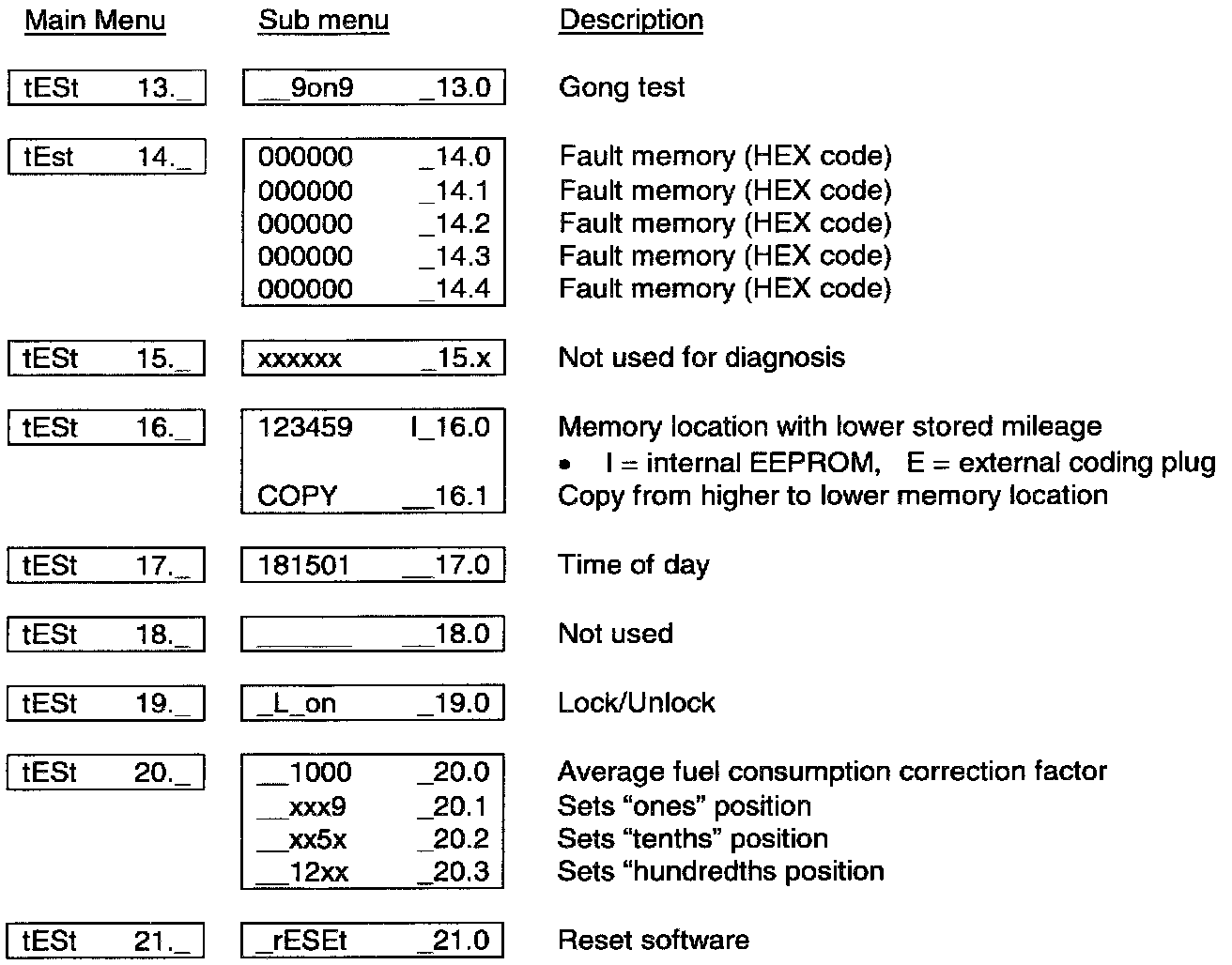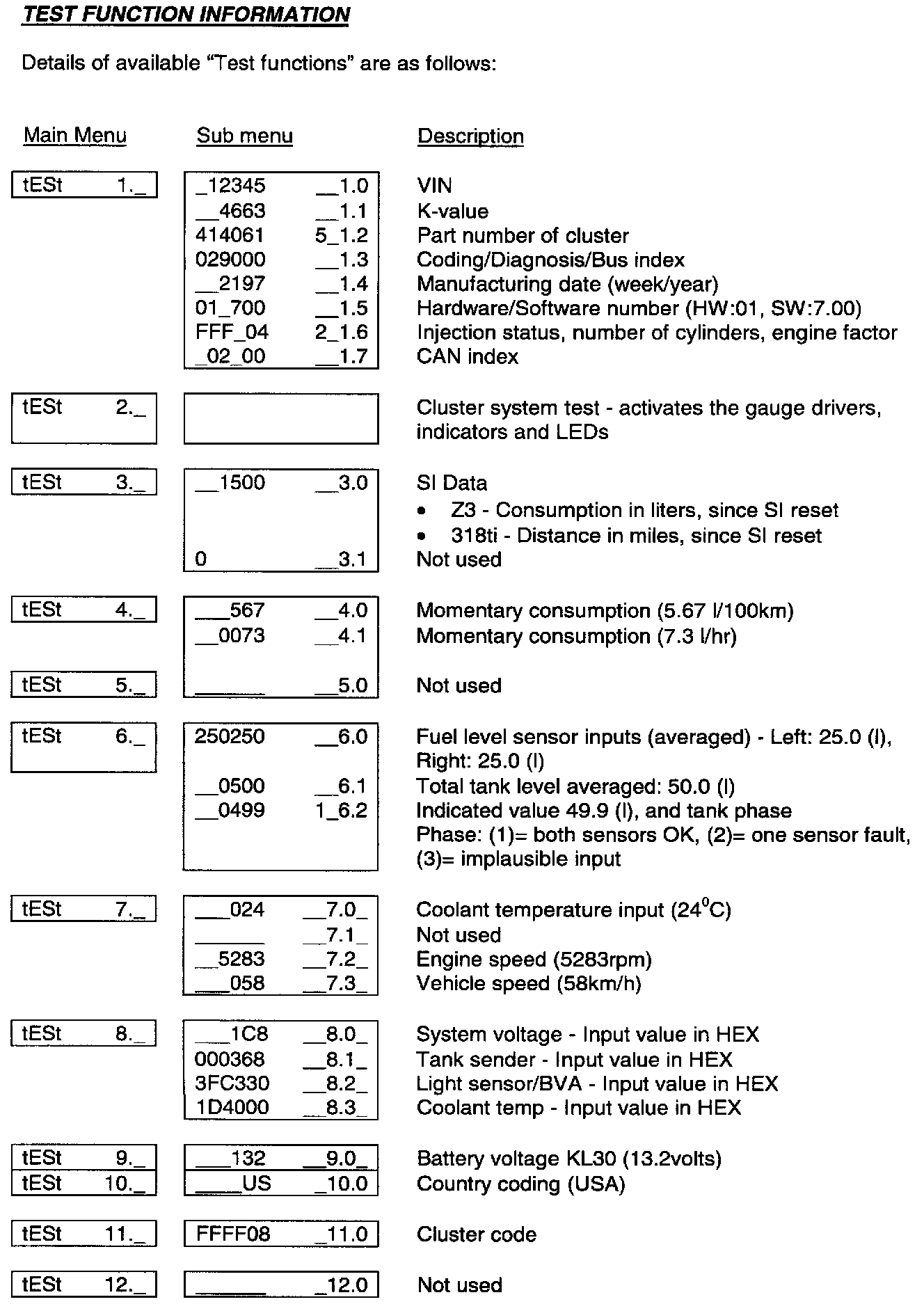 For vehicles produced before 9/98, new and old style Instrument Clusters are mixed in the BMW parts supply system under the same part number. For installation of the old style Instrument Cluster which has (15) "Test Functions", refer to Repair Instruction 62 10 000.