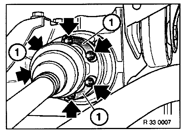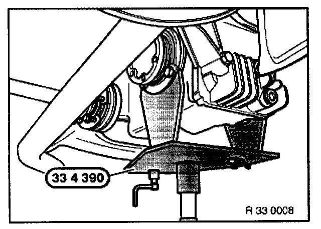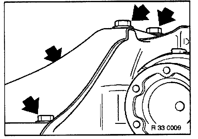 Support final drive from underneath with a transmission lifter and special tool 33 4 390.