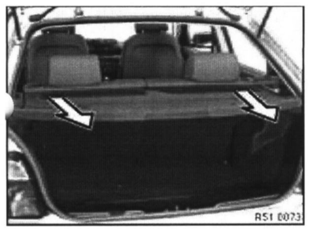 Unfasten cables on trunk lid and lift oddments tray backwards to remove.