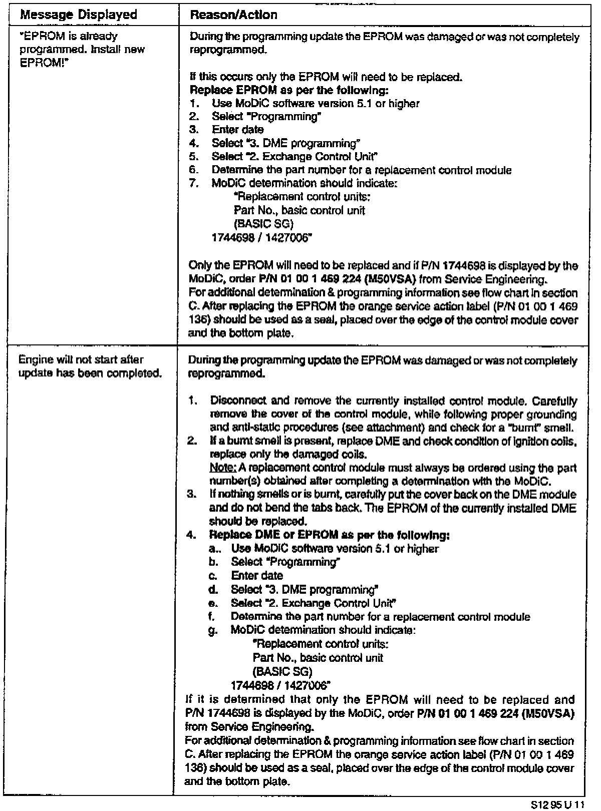A. M50 (Vanos) DME EPROM Reprogram/Troubleshoot Procedure