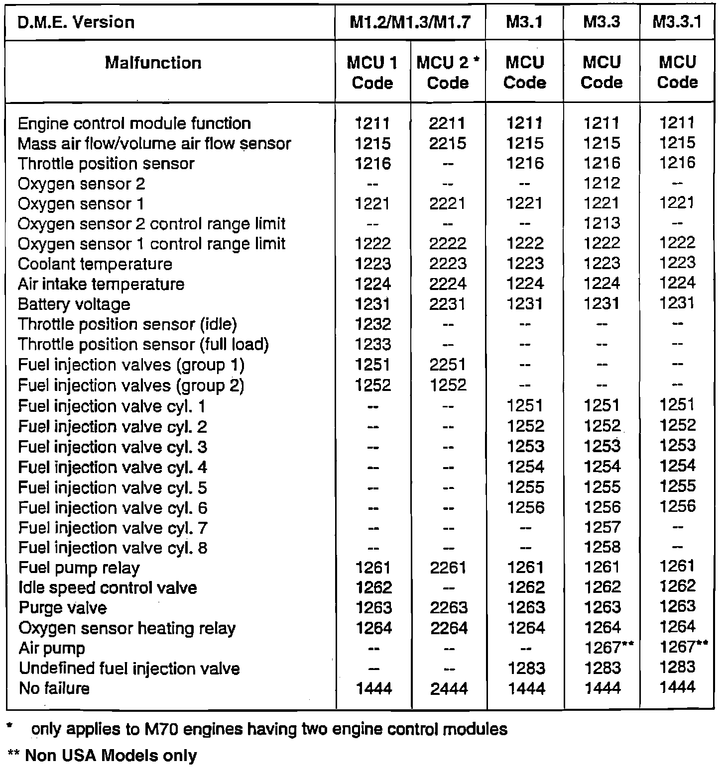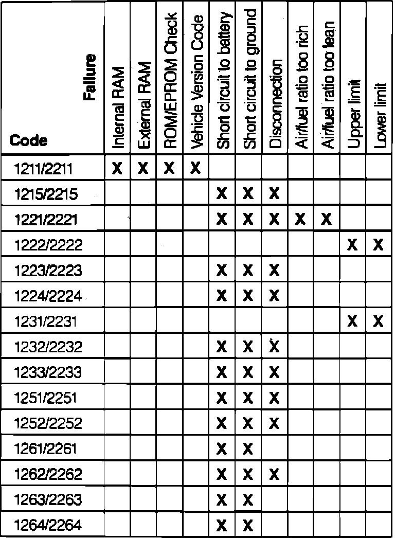 The fault code chart lists the various codes which can be displayed through the "Check Engine" light. After identifying the affected component or system, Manufacturer Code Charts