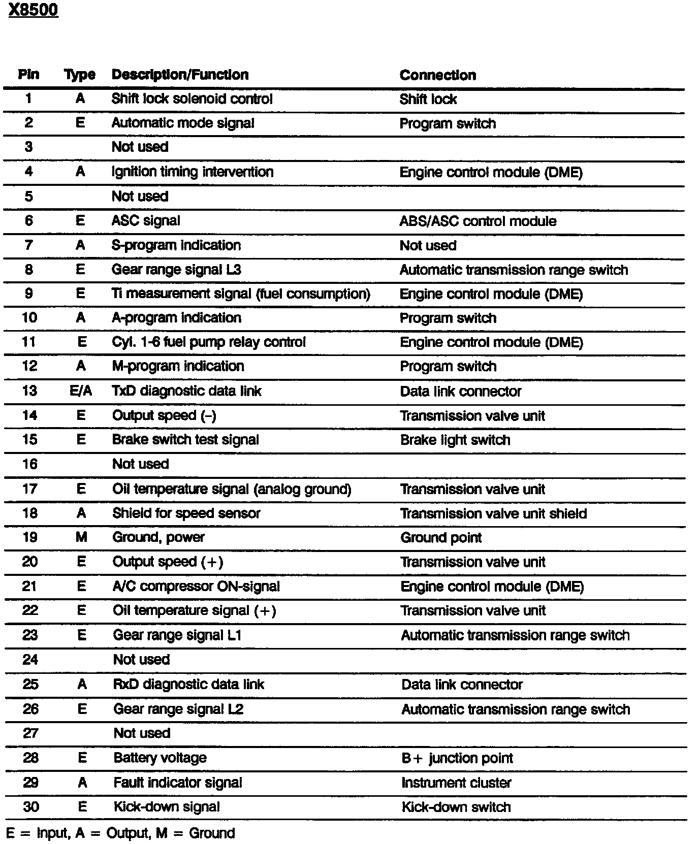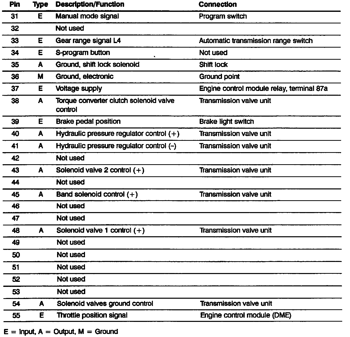 Electronic Transmission Control (EGS A4S 310R): Pin Assignment: