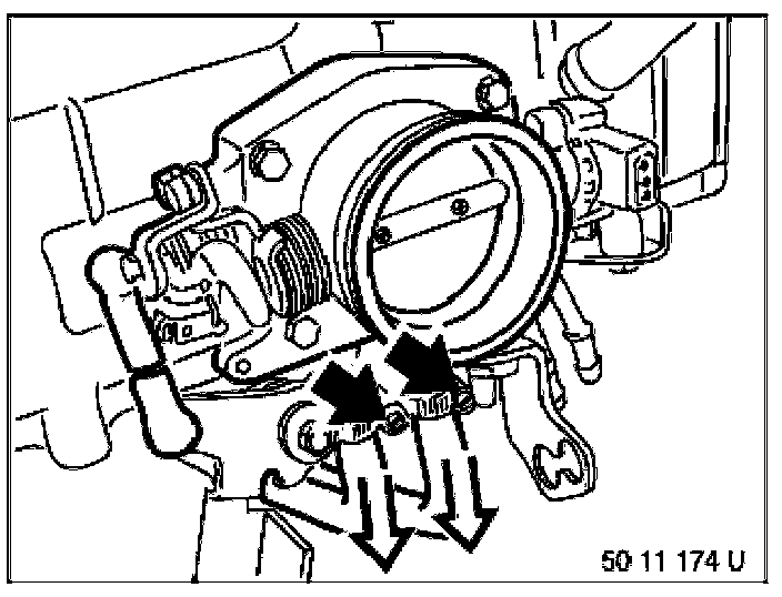 - Disconnect throttle valve assembly heating hoses.