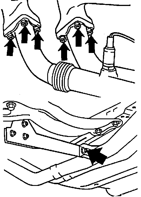 6. Remove the exhaust flange bolts at the rear of the catalytic converter.