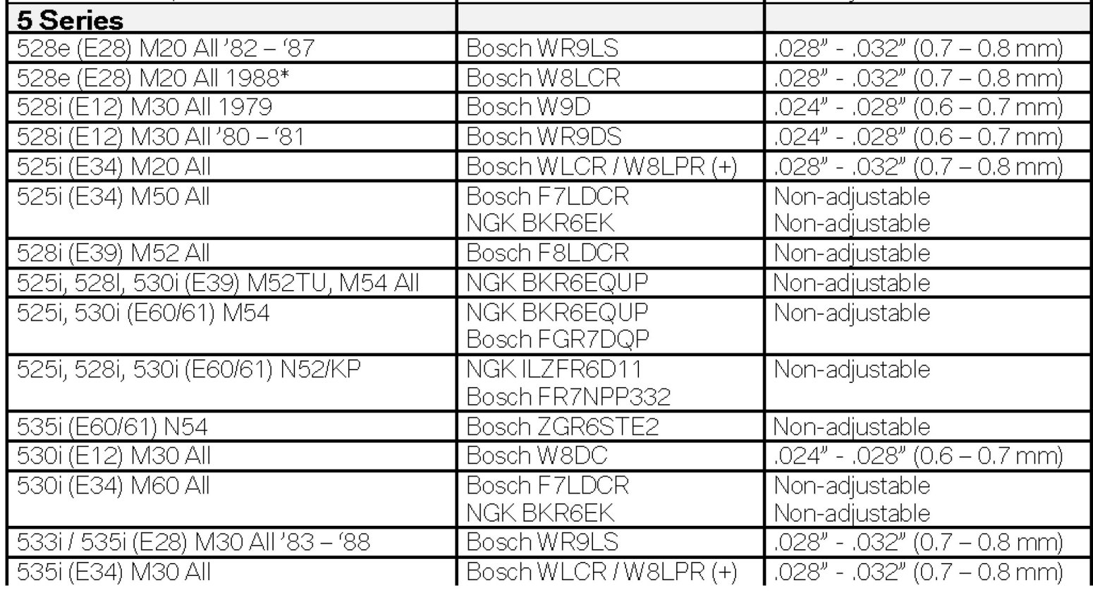 (+) M20 and M30 engines - platinum spark plugs may be used in place of the standard type.
