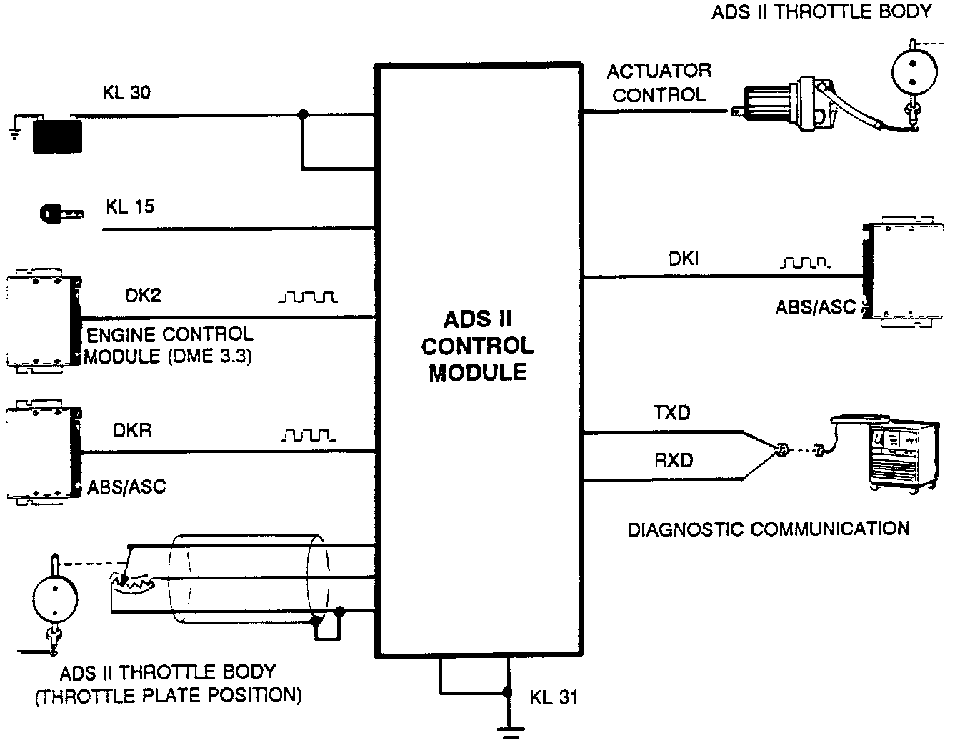 The Auxiliary Throttle Valve Control (ADS II) control module controls the operation of the ADS 11 actuator and monitors the position of the ADS 11 throttle body.