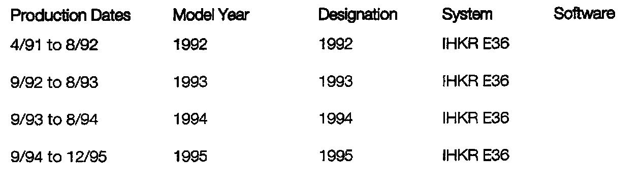 E36 IHKR production dates and model year information are as follows:
