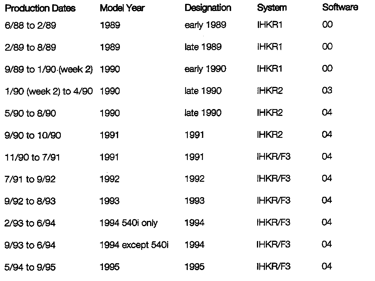 - IHKR2 was installed only on cars built between 1/90 and 10/90, so most 1991 model year and all later E34s will have IHKR/F3.