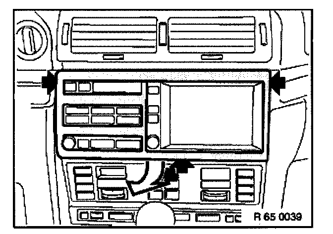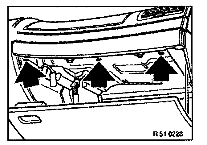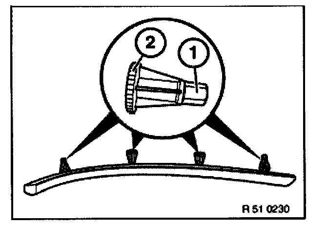 Fit outer plastic nuts with knurling (2) facing trim and inner plastic nuts with hexagon heads (1) facing trim (risk of damage to passenger airbag).