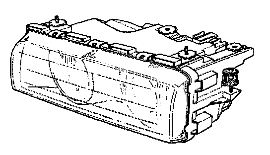 The E38 headlight assembly utilizes an ellipsoidal low beam reflector and a free form parabolic highbeam reflector. Both low and high beams use halogen bulbs.