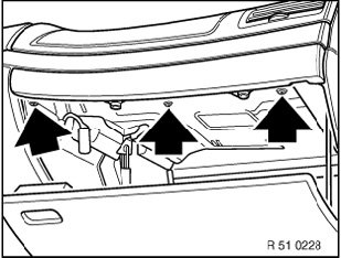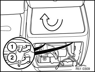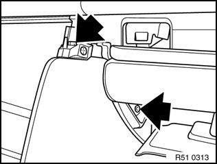 Unclip panel (rear storage shelf) above opening, rear (1) and front (2).