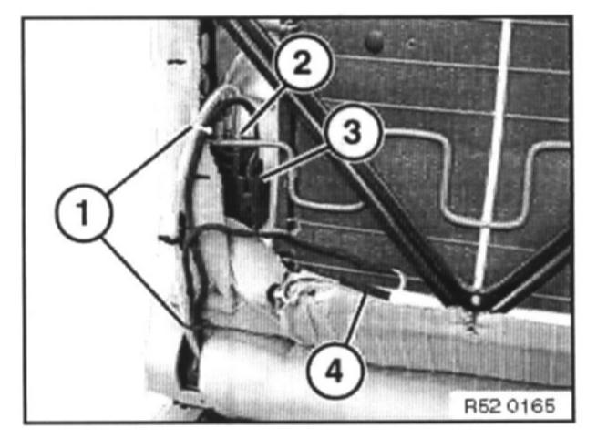 Unfasten cable connector (1). Detach hose (2) and disconnect plug connection (3).