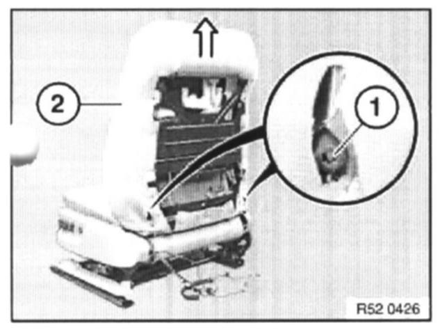 If the retaining clip (1) cannot be fitted (does not snap into place), the backrest is not correctly snapped into place. The backrest must then be unlocked and relocked again, refer to next work step.