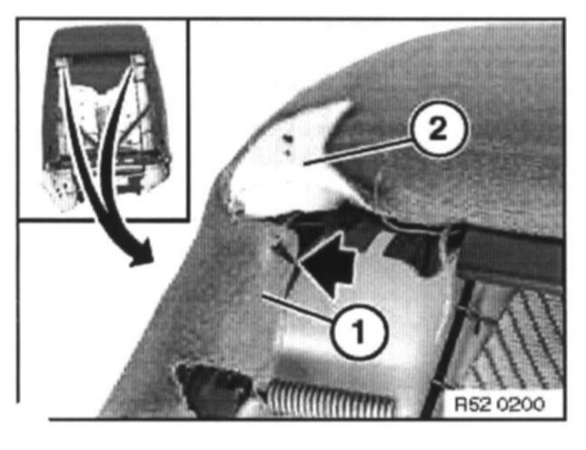 First hook in side backrest cover (1), then upper section (2).