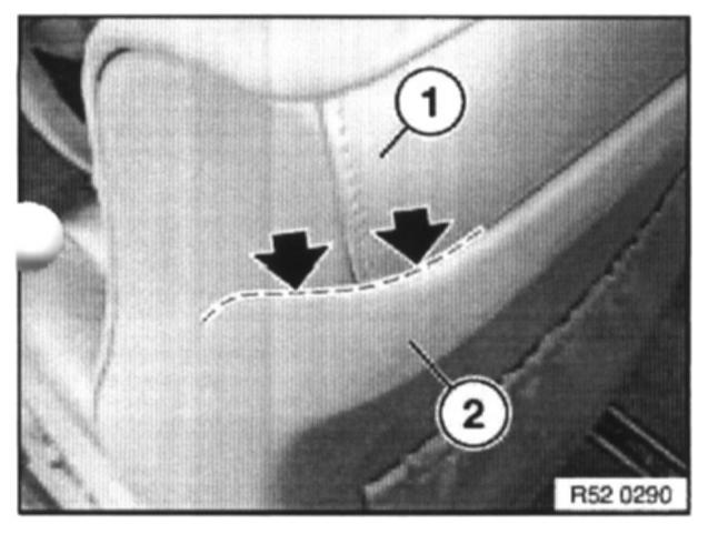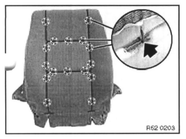 Remove trim threads (1) from backrest cover. Cut new backrest cover to size and insert trim threads.