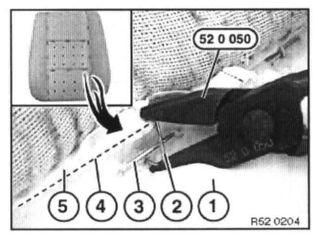 Fold in new clip (2) with special tool 52 0 050.