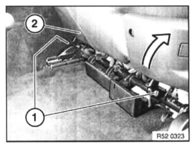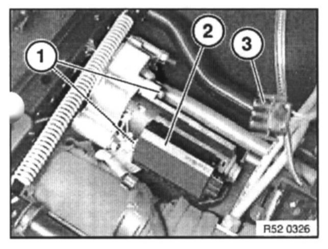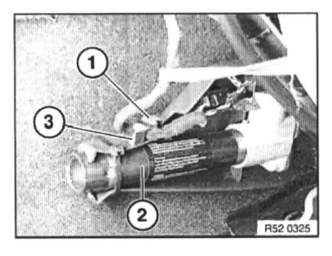 Feed cable (1) for belt tensioner (2) out of support (3).