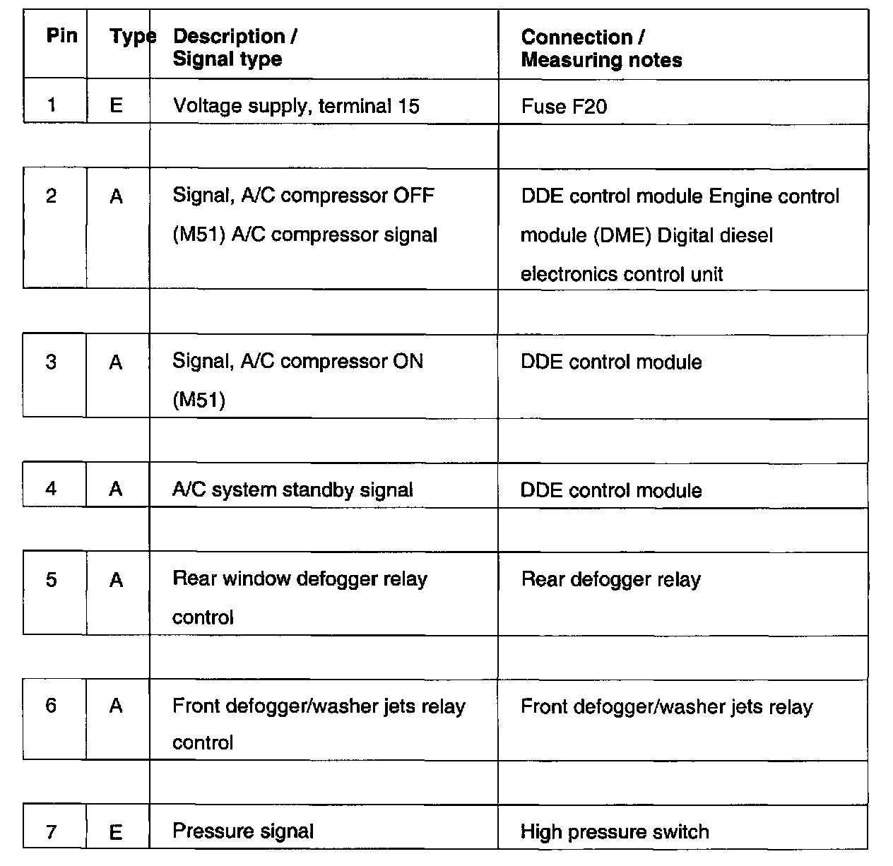 Pin assignments at connector X610