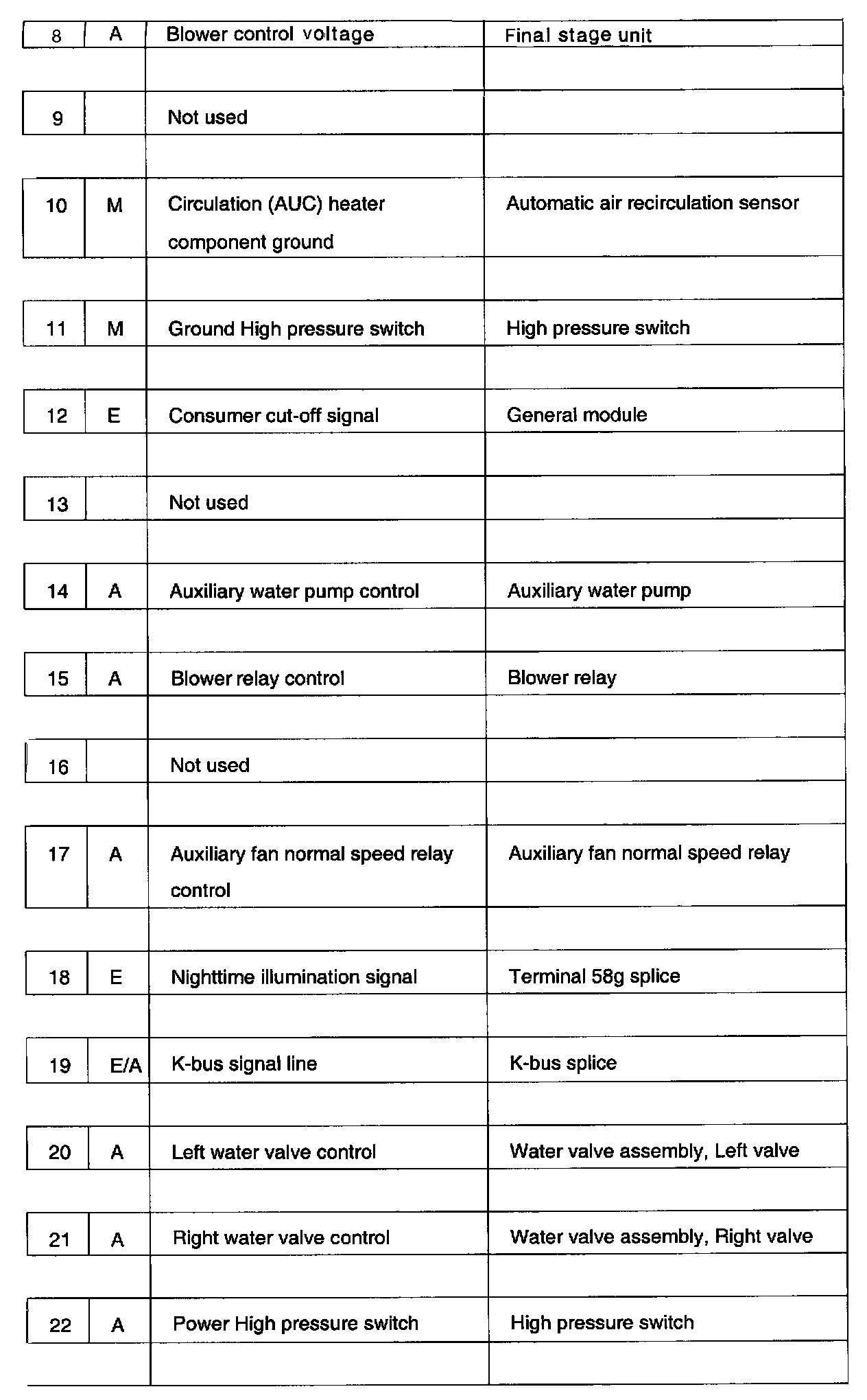 Pin assignments at connector X614