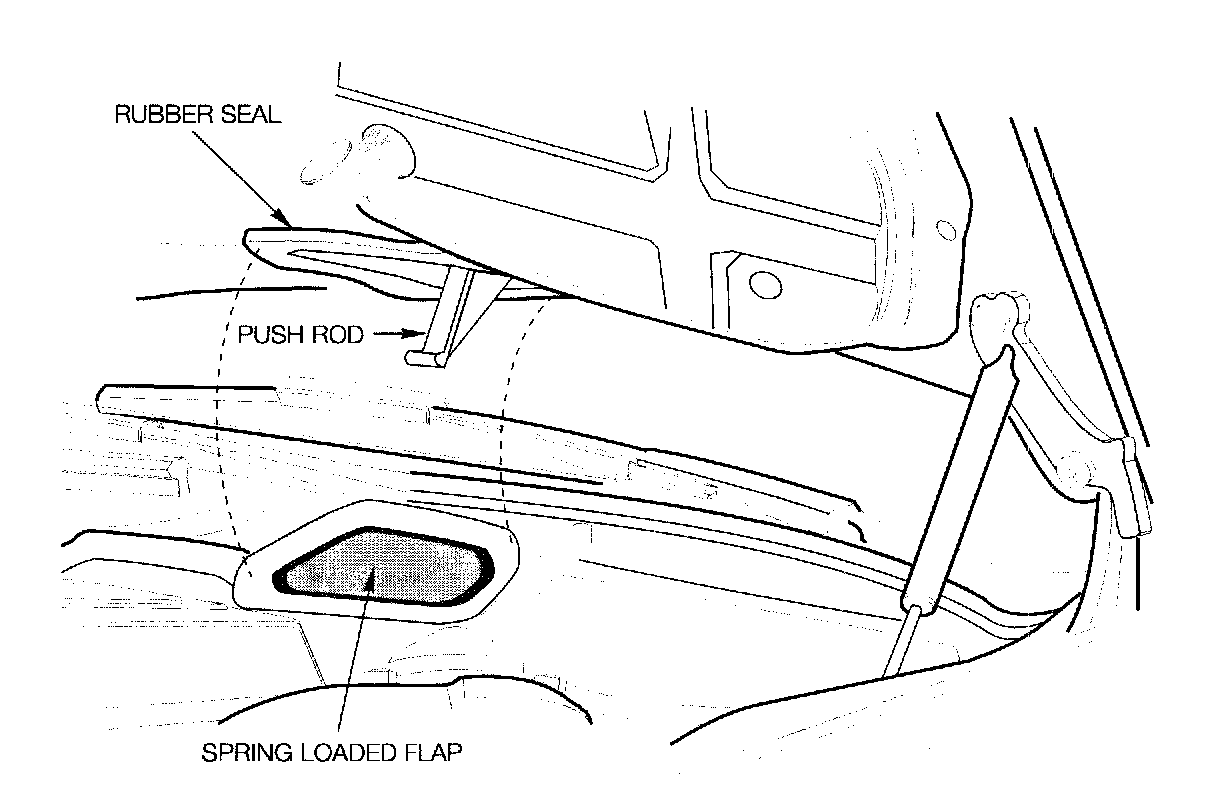 To prevent objects from falling into the fresh air intake ducts while the hood is open, a spring-loaded flap is placed at the entrance to each duct. As the hood is opened, the flaps close automatically When the hood is closed, pushrods mounted to the underside of the hood force the flaps open.