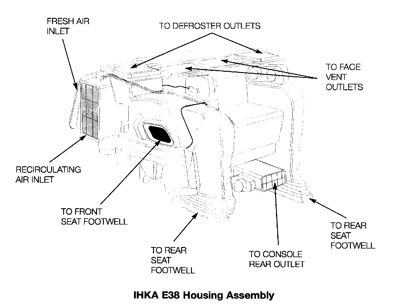 The IHKA E38 housing is very different in appearance and layout from earlier IHKA housing assemblies, but it has almost the same system components mounted inside or on it.
