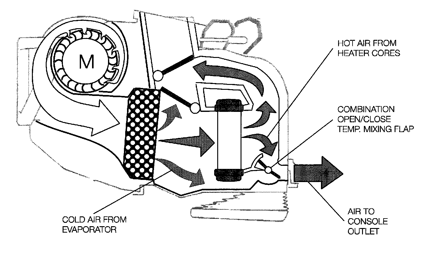 - The housing assembly design allows a single stepper motor/flap assembly to provide both open/close operation and temperature mixing