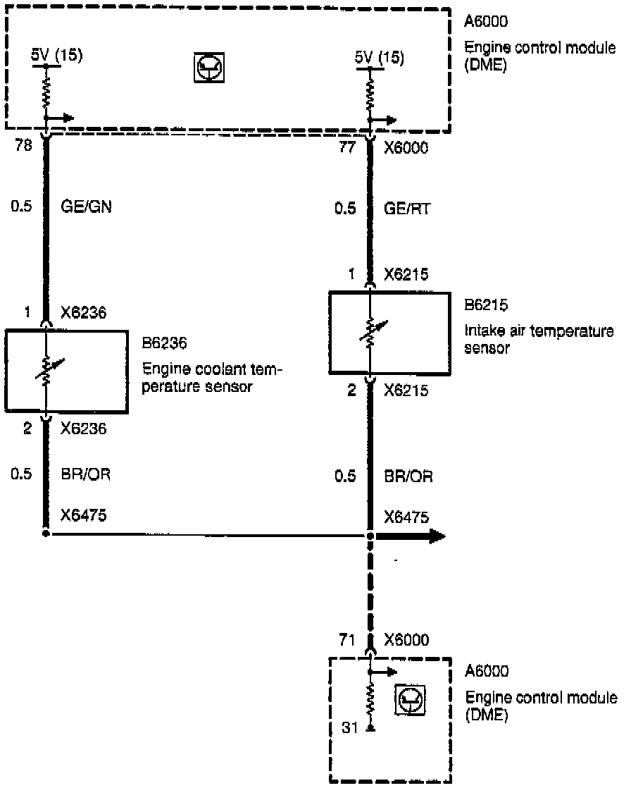 Engine Control System (DME M3.3, 8-cylinder M60): Engine Coolant And Intake Air Temperature Sensors: