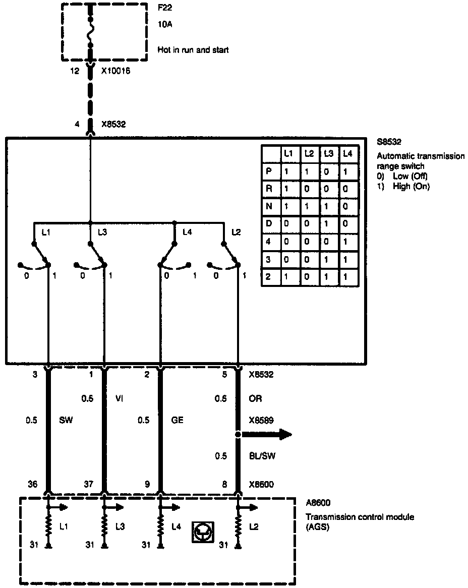 Adaptive Transmission Control (AGS) - Transmission Range Position Switch: