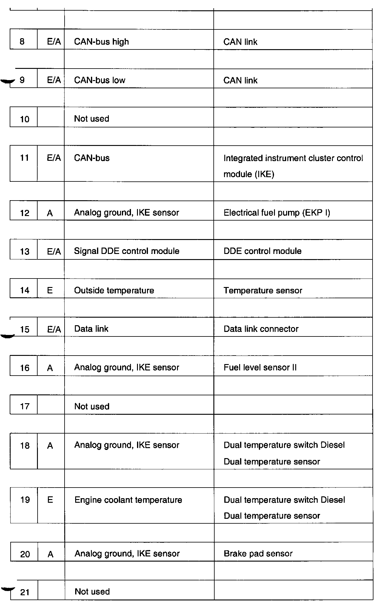 Pin assignments at connector X10113