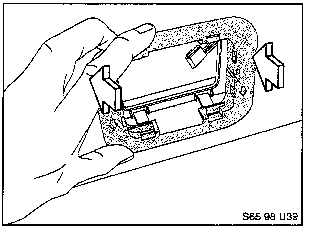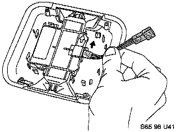 Rotate approximately 90°, and slide the bracket out of the aperture in the roof panel, on the diagonal. Discard the upper mounting bracket.