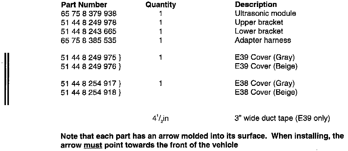 Note that the ultrasonic sensor replaced the FIS sensor in series production from 9/98.
