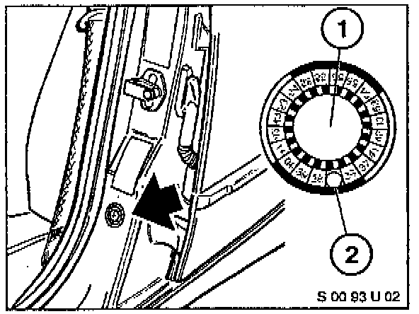 a) Emboss your BMW dealer warranty number in the middle of the label (1).