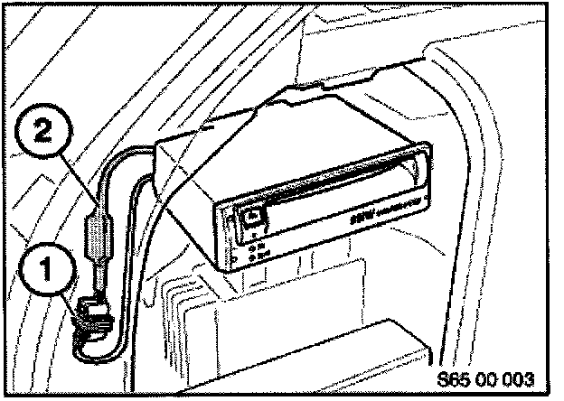 3. Using the special tool (1) (65 5 400), release and remove the navigation computer (for removal instructions, please refer to RA 65 90 510)