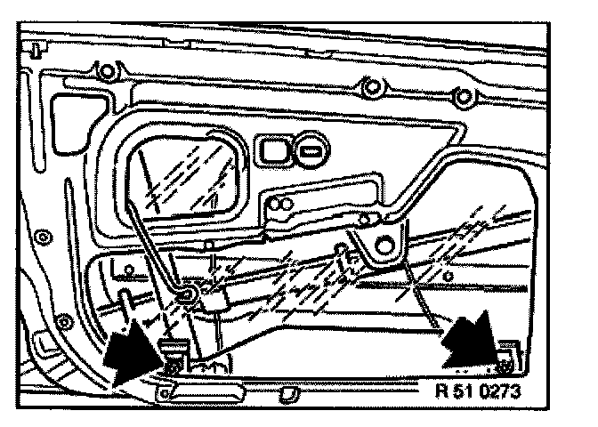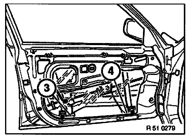 - Unfasten screws (only loosen lower 3 screws) and remove complete cable on window regulator.