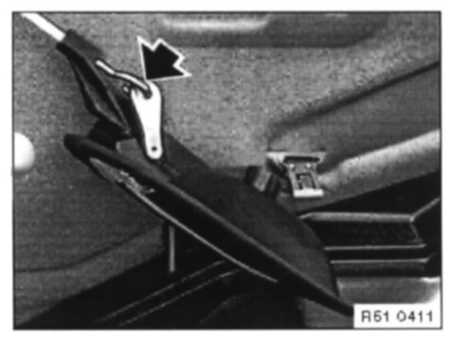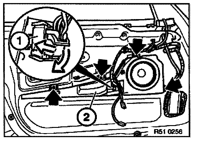 - Cut through cable connector and remove cable holder (2) (expanding rivets).