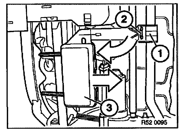 Release cable ties (1). Unlock catch (2). Turn drive unit for lumbar support (3) downwards and detach towards rear.