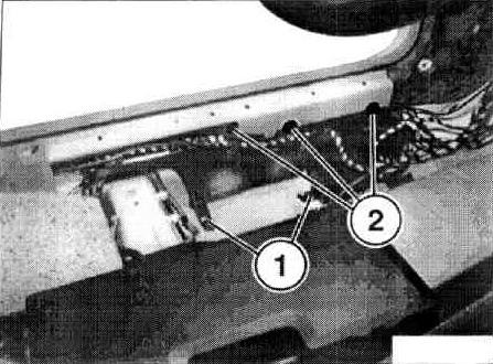 Loosen the nuts (1) and clips (2), unclip the cable cover and turn it around.