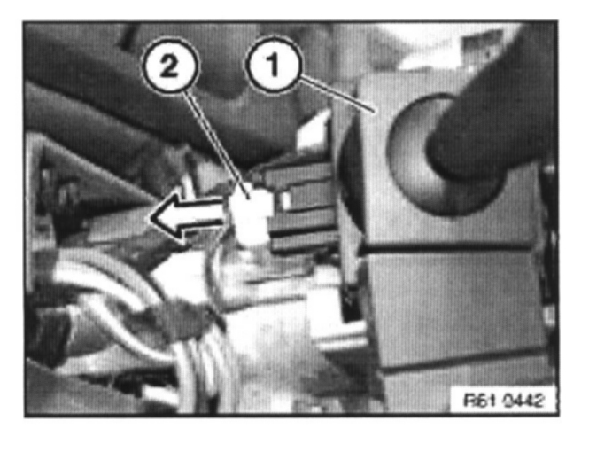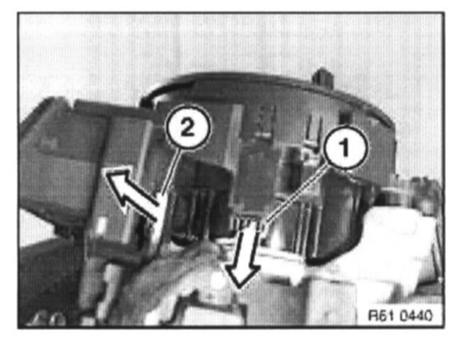 If necessary, disconnect plug connection (1) at mount for steering column stalk.