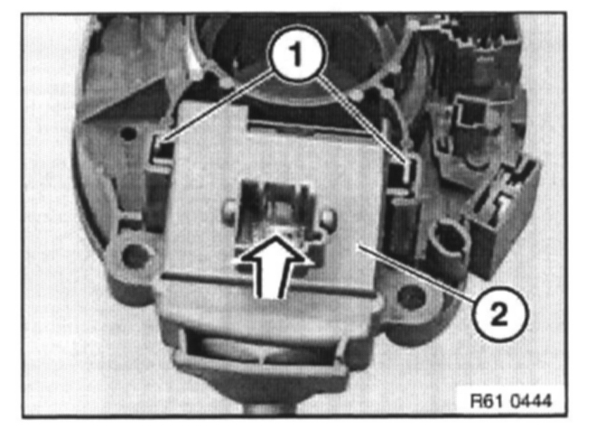 Unlock retainers (1) and pull out turn indicator/dipping switch (2) towards top.