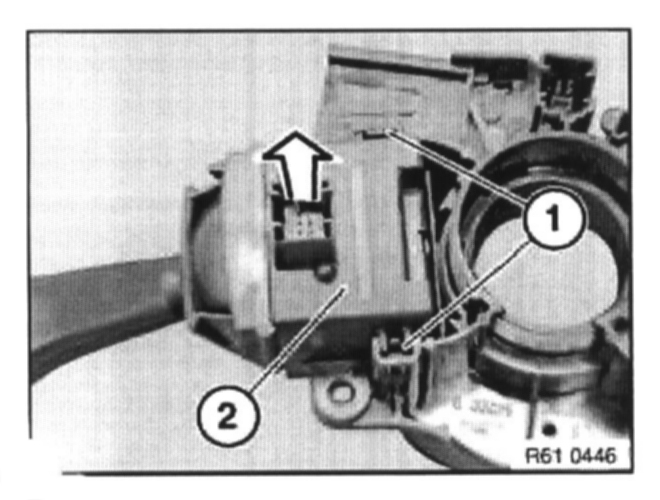 Unlock retainers (1) and pull out switch for windshield wipers (2) towards top.
