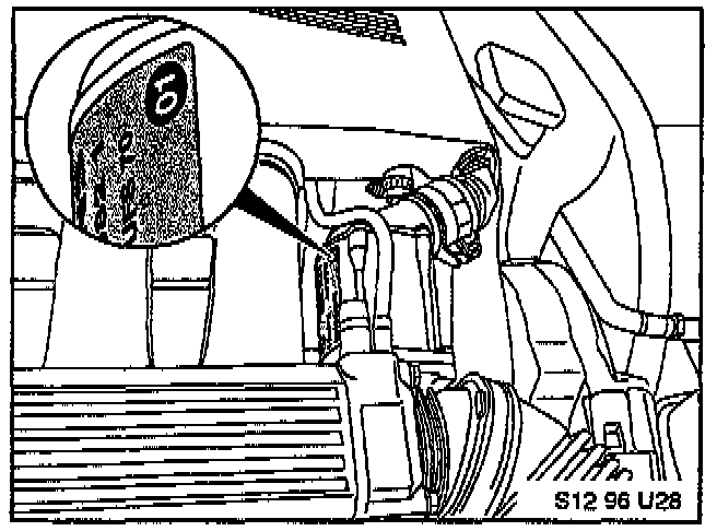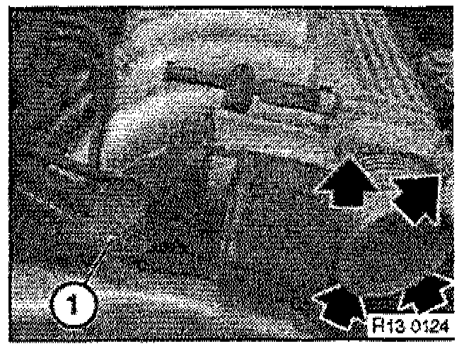4. On the left side throttle housing assembly (DK motor), the bottom of the label can be seen by using a small flexible mirror (1) to view the bottom of the throttle housing assembly and the bottom edge of the Siemens label.