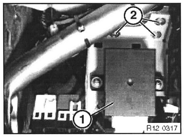 Unscrew and remove control unit (1) from bracket. Unfasten screws (2) and remove bracket.