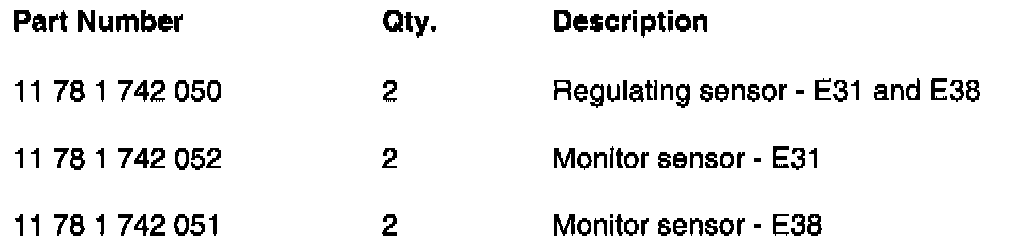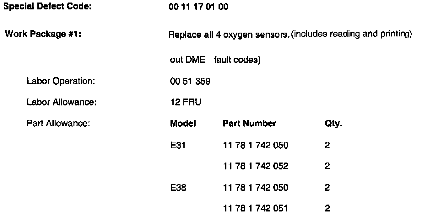 -- Replace both regulating oxygen sensors and both monitor sensors as outlined in the E38 repair manual group 11 sections 11 78 510 and 11 78 610.